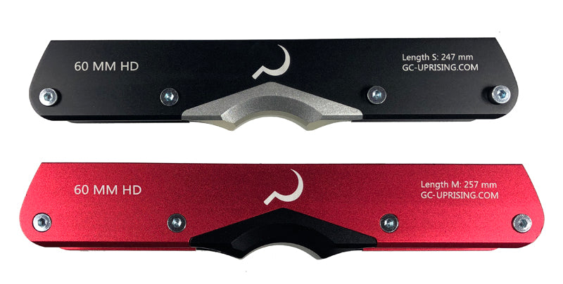 Ground Control HD Aluminum Frames in 60mm & 72mm sizes are here. The HD frames are stiffer and more responsive than the typical UFS plastic grind frame - allowing for increased energy transfer, equaling more speed at the park and in the street. Countersunk axle holes help protect bolts from wear. Interchangeable plastic & aluminum h-blocks offer options for all kinds of obstacles. H-blocks will work on both 60mm & 72mm frames in all lengths.